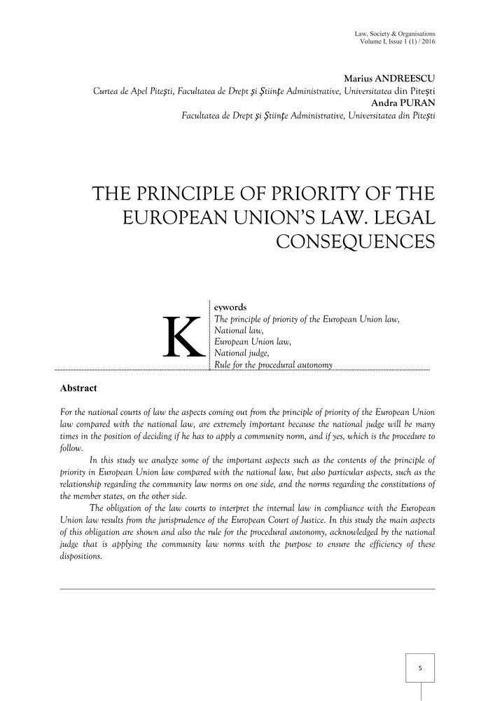 - Keywords: The principle of priority of the European Union law, National law, European Union law, National judge, Rule for the procedural autonomy
