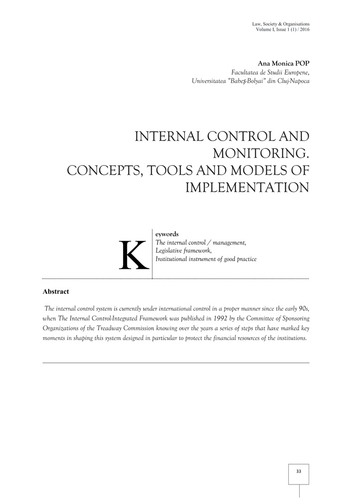 The internal control system is currently under international control in a proper manner since the early 90s, when The Internal Control-Integrated Framework was published in 1992 by the Committee of Sponsoring Organizations of the Treadway Commission knowing over the years a series of steps that have marked key moments in shaping this system designed in particular to protect the financial resources of the institutions.