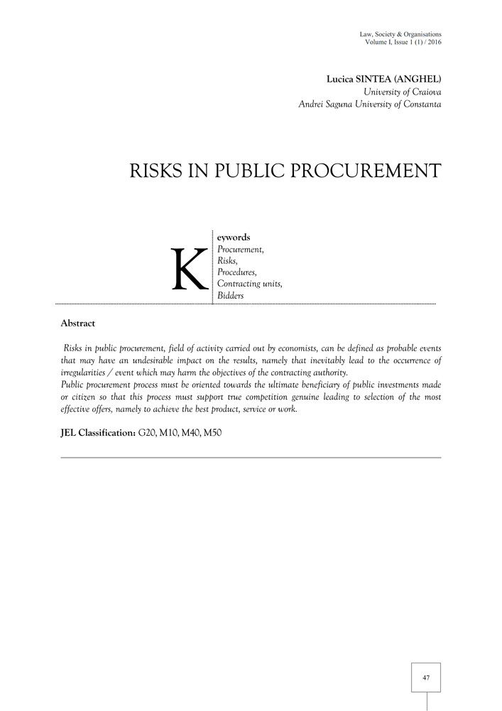 - Keywords: Procurement, Risks, Procedures, Contracting units, Bidders