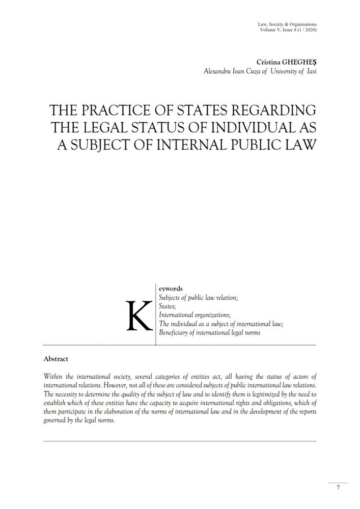 - Keywords: Subjects of public law relation; States; International organizations; The individual as a subject of international law; Beneficiary of international legal norms