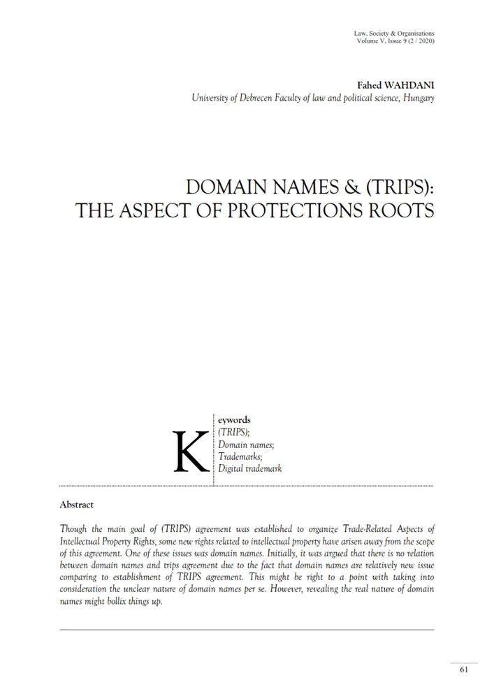 - Keywords: (TRIPS); Domain names; Trademarks; Digital trademark;