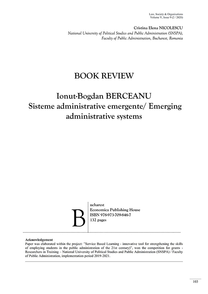 The book is able not only to present, with analytical rigorousness, the main theoretical aspects and elements presupposed by the study of the emergence in administrative systems, but it also offers a new approach within the specialty literature, which is relatively poor in approaches to social emergence and, even more, to administrative emergence. By using the concept of emergence as a characteristic of the administrative systems, it offers a viable alternative for public administration modernization, for the purpose of ensuring its sustainability and its actions in society. The book written by Ionuț – Bogdan Berceanu constitutes a significant contribution brought in the last years for understanding the complexity issues of the public administration system, a fact which recommends it as compulsory lecture for both the students and the scholars, in their activity of research, education and training.